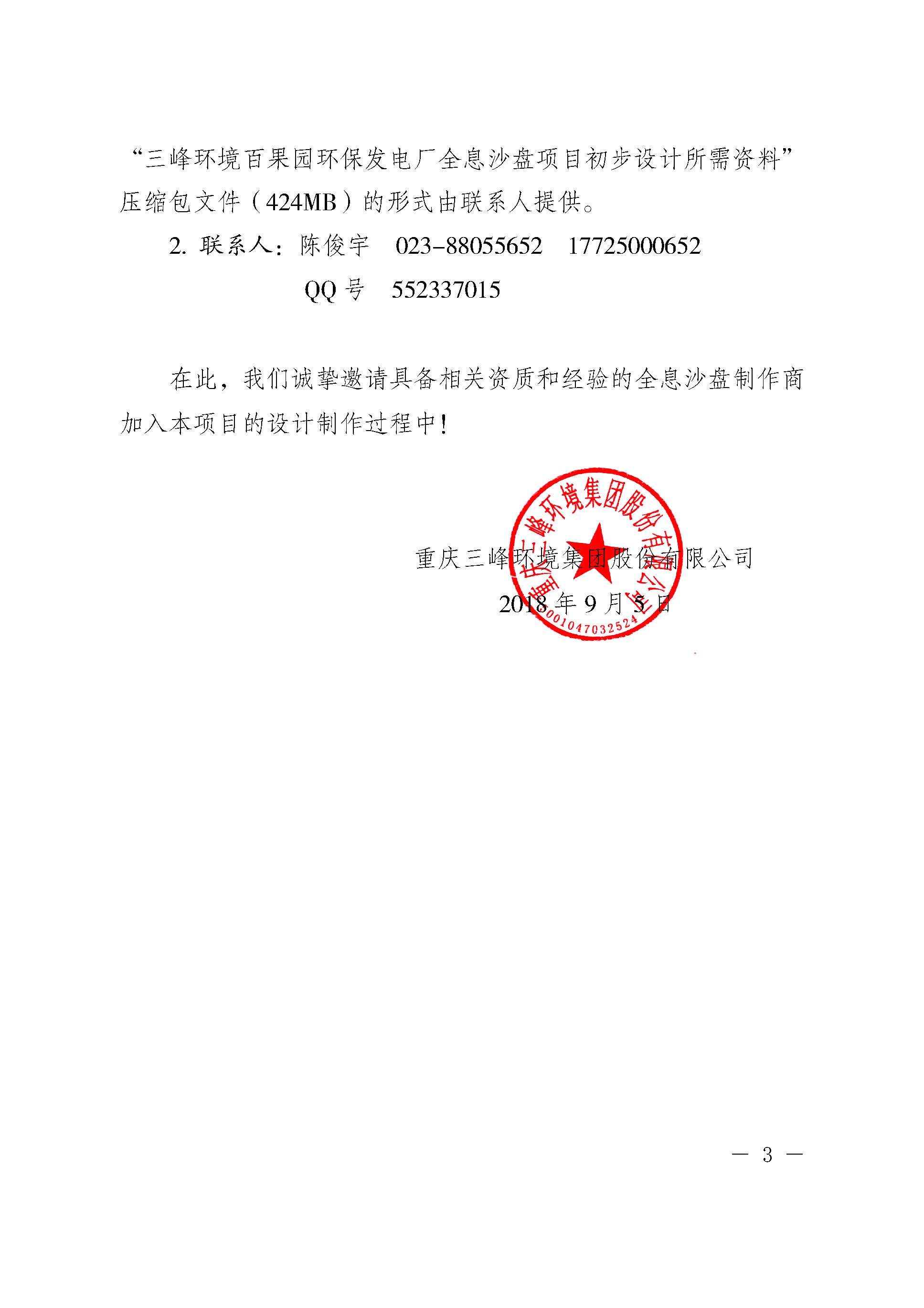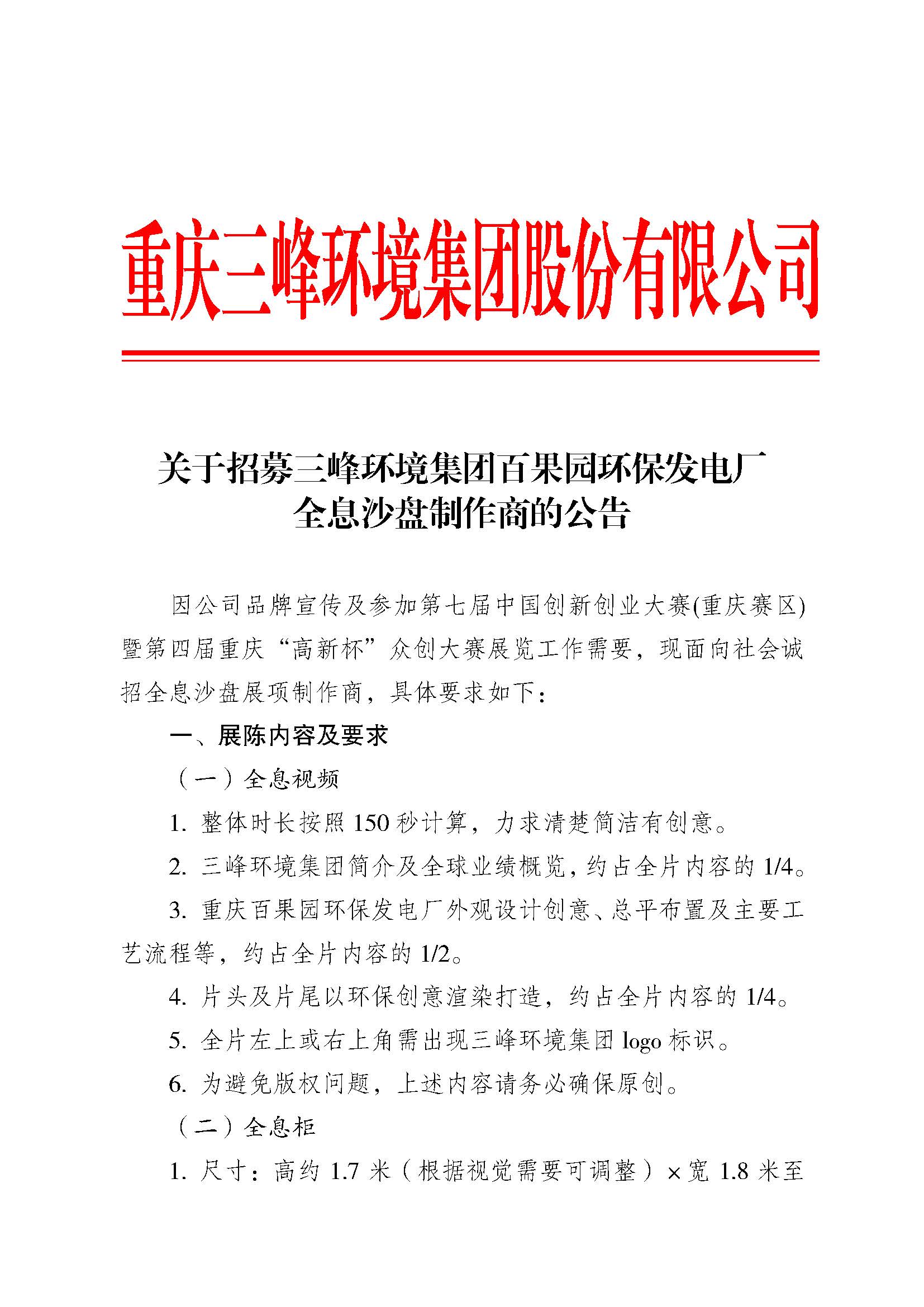 关于招募三峰环境集团百果园环保发电厂全息沙盘制作商的公告