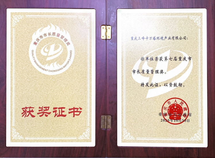 三峰卡万塔荣获第七届重庆市市长质量管理奖